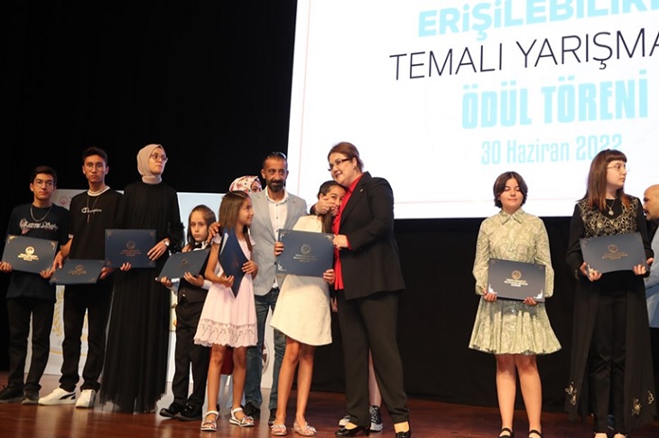 Bakan Derya Yanık, Bakanlık tarafından erişilebilirlik kültürünün oluşturulması hedefiyle ilkokullar için “şiir”, ortaokullar için “resim” ve liseler için “kısa film” kategorilerinde düzenlenen “Erişilebilirlik Temalı Yarışmalar” Ödül Törenine katıldı. Cumhurbaşkanlığı Millet Kütüphanesi’nde gerçekleştirilen törende yaptığı konuşmada Yanık, erişilebilirliğin şehirlerde farklı hizmetlerin verildiği binalar, parklar, kaldırımlar, toplu taşıma hizmetleri ve birçok hizmeti kapsayan bir tanım olduğunu söyledi.