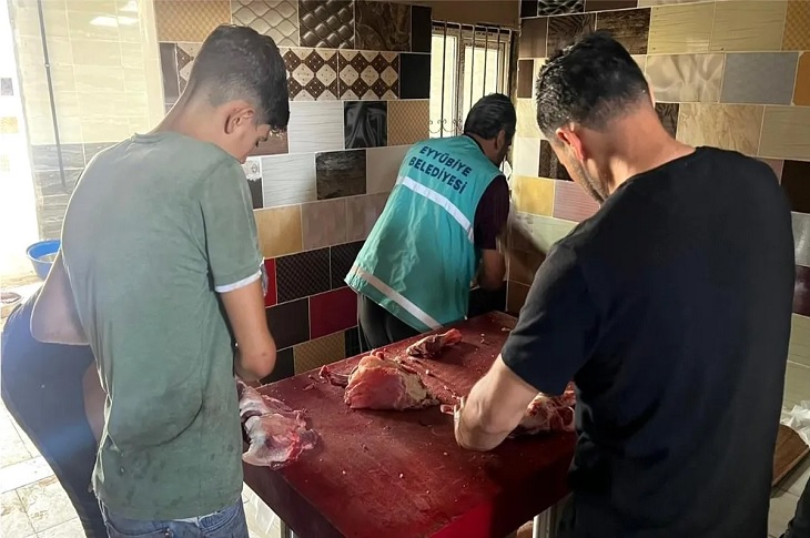 Şanlıurfa’nın Eyyübiye Belediyesi tarafından, ilçede yaşayan fakir, yetim, yardıma ihtiyacı olan, hasta ve engelli vatandaşlar için 85 kurban kesildi.