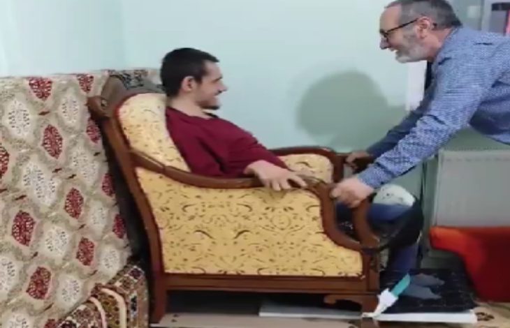 Görüntülerde, babanın el emeğiyle geliştirdiği düzenek sayesinde engelli oğlunun daha rahat hareket edebildiği görülüyor. Profesyonel ekipmanlara erişemeyen baba, sınırlı imkânlara rağmen çözüm üretmeyi başardı. Koltuğa eklenen tekerlek sistemi ve destek parçalarıyla oluşturulan bu pratik araç, kısa sürede sosyal medyada büyük ilgi gördü.
