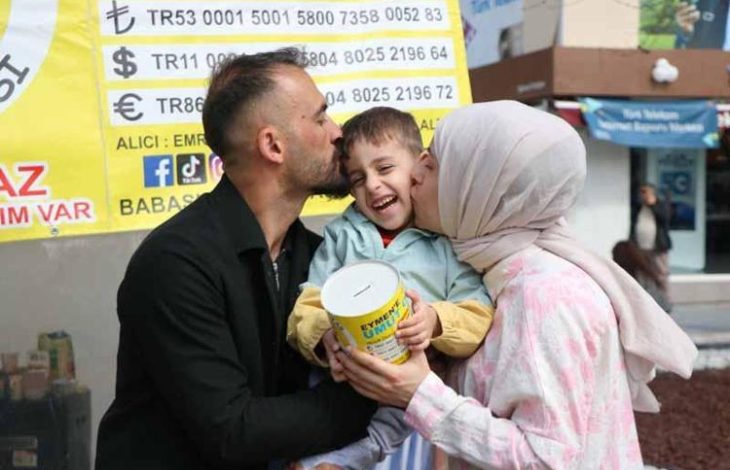 Baba Emre Altaş (35) ise “Süreç gerçekten çok zor. Sabahları 2 tane standım var. Bir pazarı açıyorum, bir de burayı açıyorum. Geri kalan zamanda kumbara ile ilgileniyorum. O işler bittikten sonra da işe gidiyorum. Beyaz eşya tamiri yapıyorum. Akşama kadar çalışıyorum. Akşam tekrar stantları toplama serüvenimiz var. Haftanın 2-3 günü canlı yayın açıyoruz. Bu süreçte çok yoruluyoruz. Bu süreci Allah kimsenin başına vermesin. Çünkü tedavisi var ama maalesef maliyeti çok yüksek olduğu için hemen olmuyor. Çok kişinin az parasıyla inşallah oğlumu sağlığına kavuşturacağız ve Dubai’ye götüreceğiz. 460 bin kişi 250 lira verdiği takdirde oğlumun kampanyası bugün bitiyor. Bütün sandıklarımız valilik kontrolünde açılıyor. İnananlarımızdan duyarlı olmasını istiyorum. Standın önünden geçerken başlarını kaldırıp, baksalar çok iyi olur. Bu kampanyalar, 3-5 lirayla biten kampanyalar. Eğer oğlum ilacını, tedavisini alamazsa maalesef tekerlekli sandalye kullanmaya başlayacak. Daha sonrasında istemediğimiz sonuç vefat edecek. İnşallah bu olayı yaşamayız. Cebinizdeki bozuk paralarla oğlum sağlığına kavuşabilir” diye konuştu.