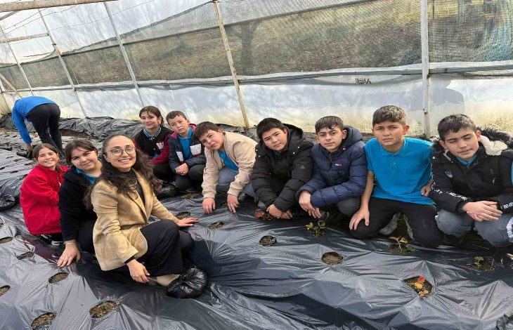 Manisa’nın Gördes ilçesine bağlı Çiğiller İlköğretim Okulu bahçesinde, “Sevgimizi Seramızda Büyütüyoruz” projesi kapsamında 150 metrekarelik alanda kurulan serada çilek dikimi gerçekleştirildi.