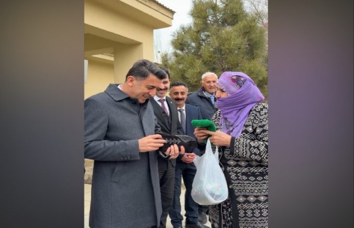 Tunceli Valisi Şefik Aygöl’ün Mazgirt ilçe ziyareti kapsamında Şeyh Çoban Baba Cemevi’ne gerçekleştirdiği ziyaret, yürekleri ısıtan anlamlı bir buluşmaya ev sahipliği yaptı. Engelli eşine yapılan yardımlar nedeniyle duyduğu minnettarlığı dile getirmek isteyen yaşlı bir teyze, el emeğiyle ördüğü patikleri “Bunu eşine verirsin” sözleriyle Vali Aygöl’e hediye etti. Samimi anların yaşandığı buluşma, devlet ile vatandaş arasındaki gönül bağını bir kez daha gözler önüne serdi.